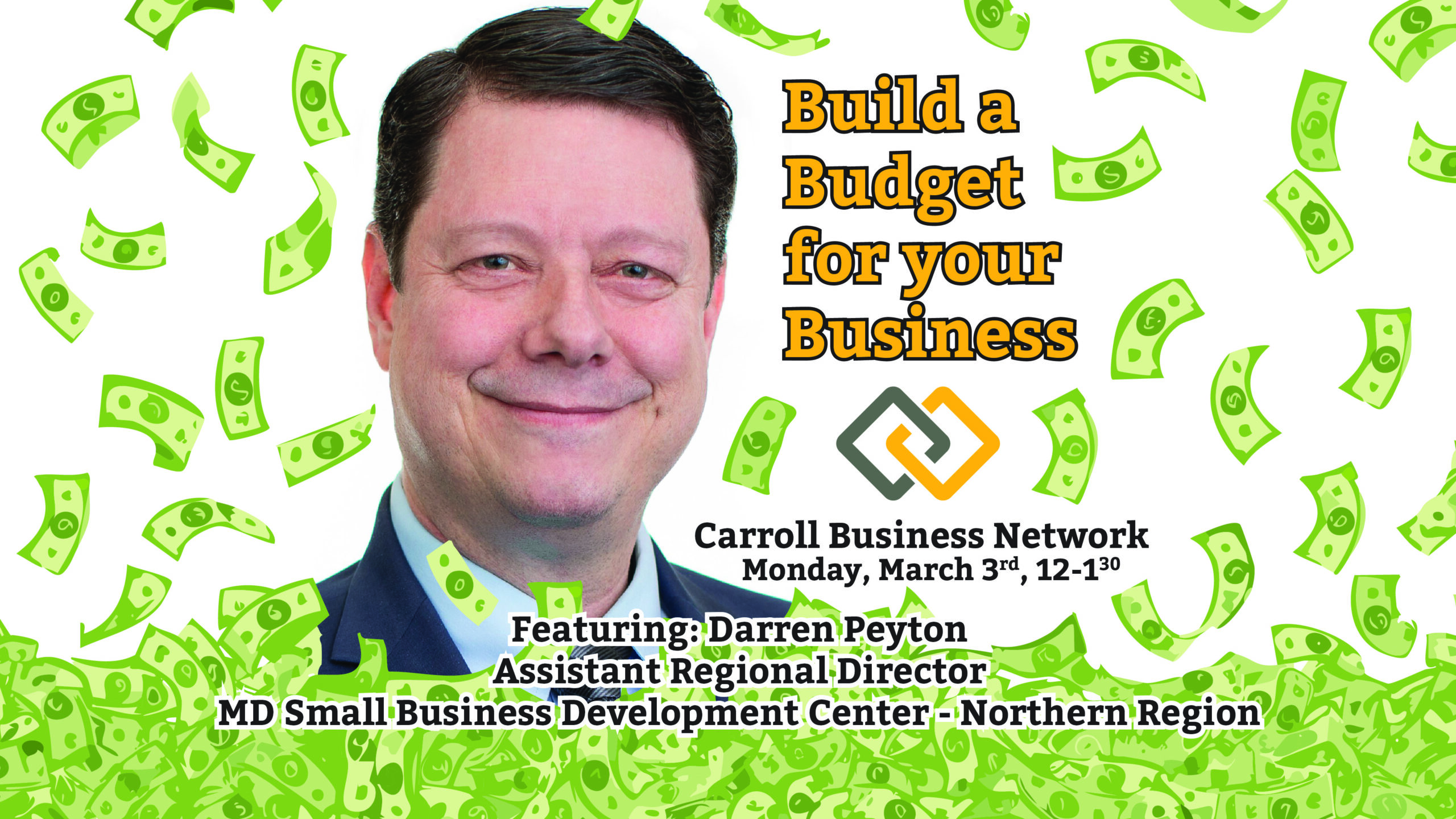 This is a pre-registration ticket to attend the Carroll Business Network luncheon event at Tony’s Japanese Restaurant on March 3rd, 2025, featuring Darren Peyton, Assistant Regional Director, MD Small Business Development Center (Northern Region), speaking about Building a Budget for your small Business! Pre-purchasing your lunch fee is $22 Purchasing your lunch fee at the door is $25.